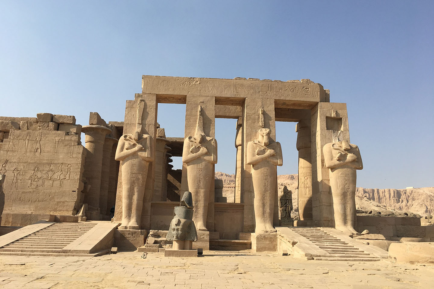 Desembarque y visitas en Luxor: Valle de los Reyes, Templo de la Reina Hatshepsut y Colosos de Memnón. Traslado al aeropuerto para volar a El Cairo. Cena en restaurante local y alojamiento en el hotel.